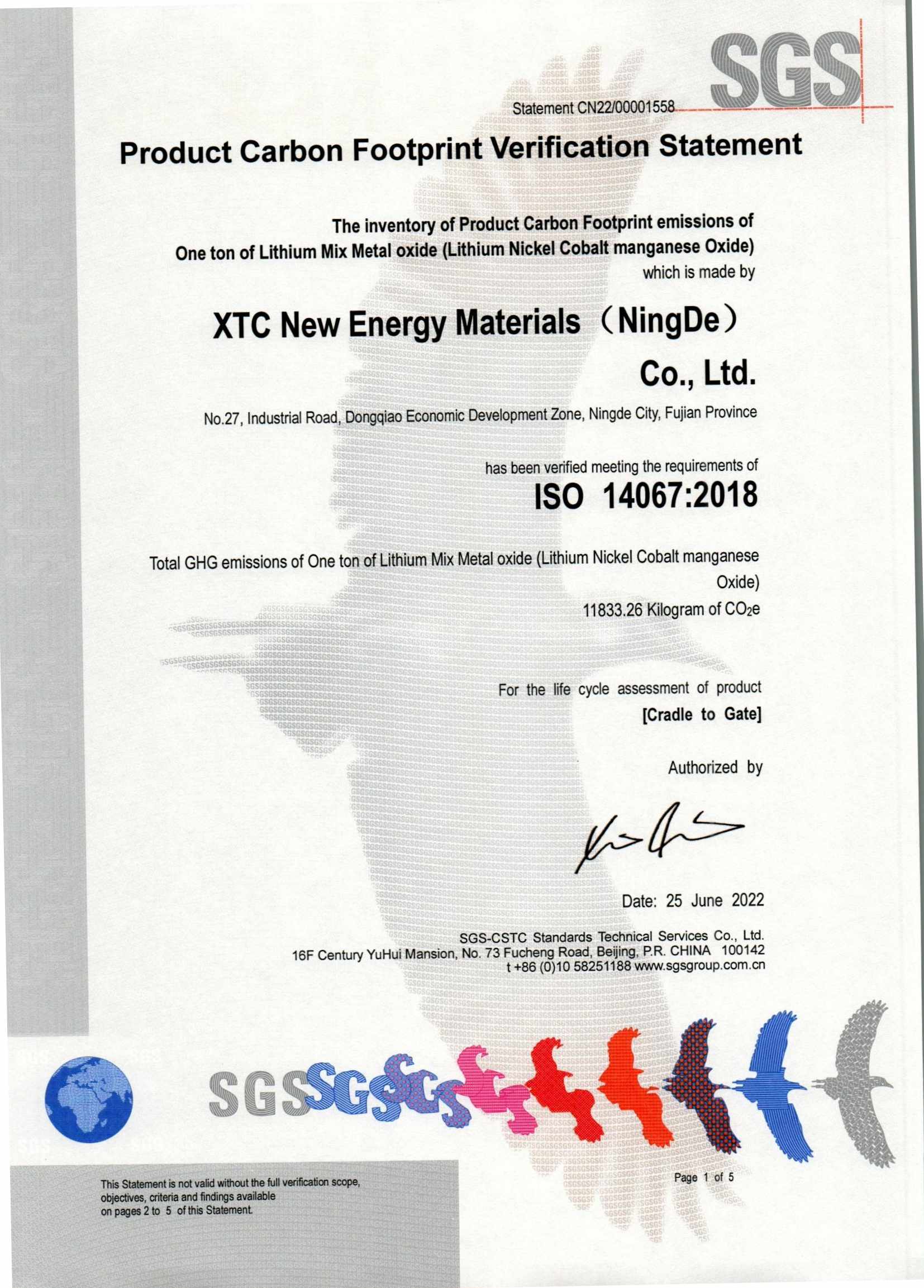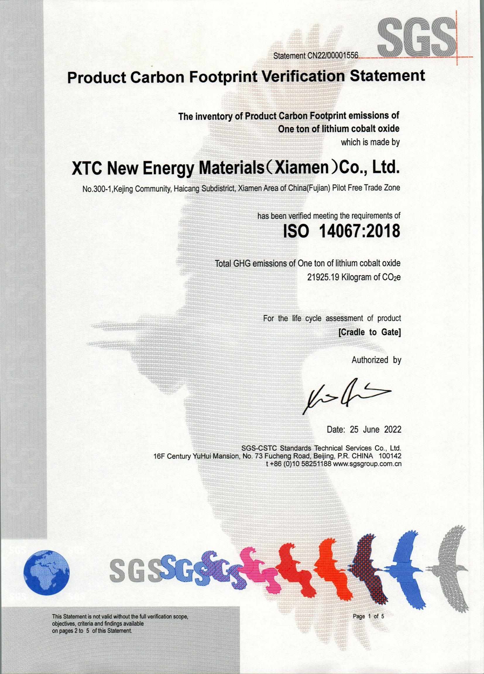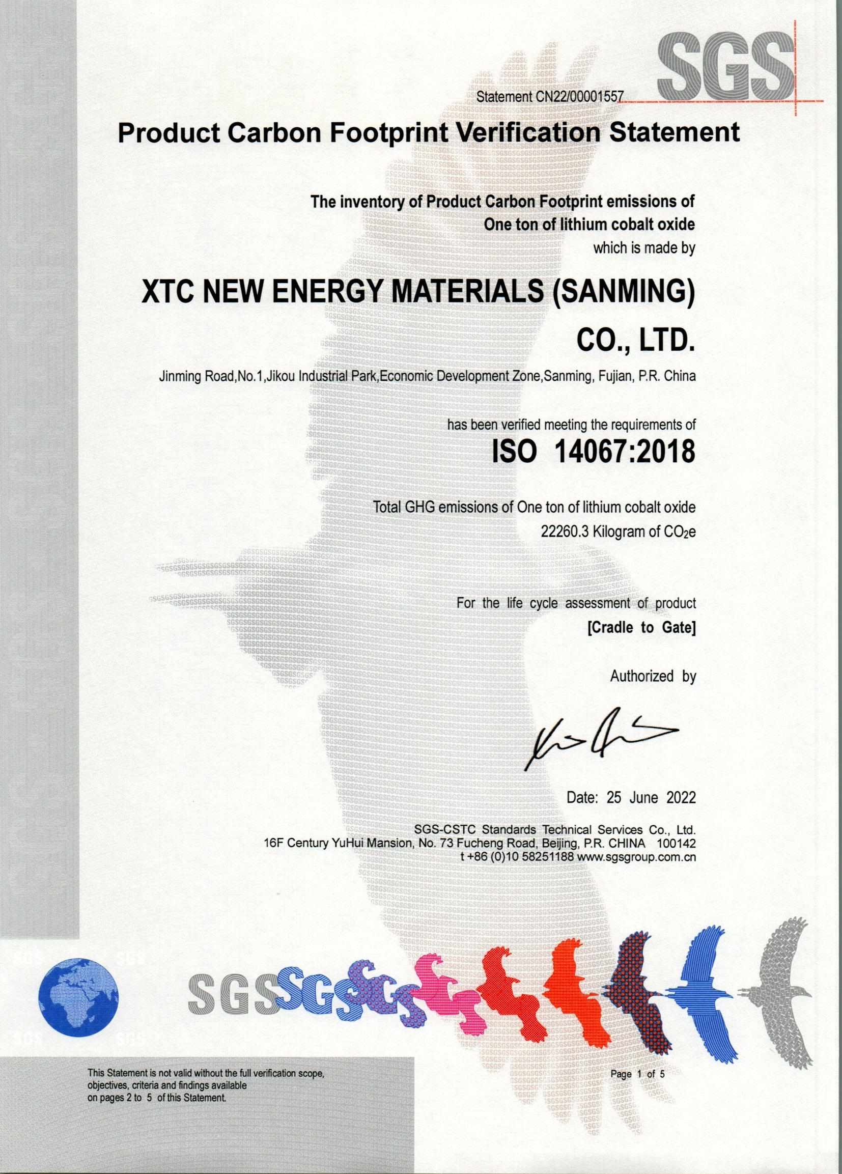 厦门、三明、宁德基地碳足迹14067认证书公示