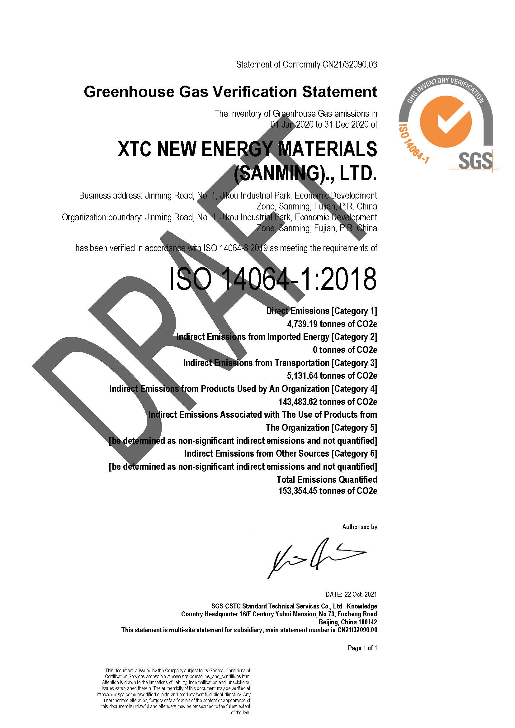 三明厦钨新能源材料有限公司温室气体核查声明公示